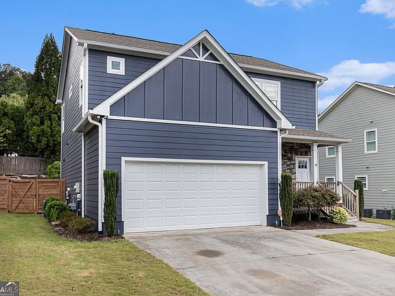 Welcome to this beautifully maintained Craftsman-style home, perfectly situated on a peaceful cul-de-sac lot. Enjoy relaxing or entertaining on both the covered front and back porches-ideal for hosting family and friends year-round! Step inside to discover an open and inviting floor plan with real hardwood floors throughout the main level. The spacious kitchen is a chef's dream, featuring stainless steel appliances, solid surface countertops, a large island, and elegant 42-inch cabinetry. Upstairs, the oversized Primary Suite offers a private retreat complete with a cozy sitting area and wet bar. The luxurious en-suite bath includes granite countertops, a separate soaking tub, and a tiled shower. Two generously sized secondary bedrooms and a full bath complete the upper level. Located in the highly sought-after Forsyth County school district, this home offers the perfect blend of comfort, style, and convenience. Don't miss this opportunity-schedule your showing today!