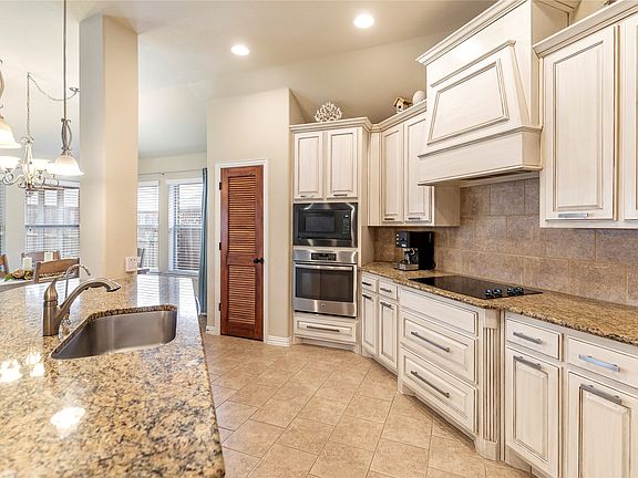 Wood burning fireplaceRecessed lightingEnclosed sunroomGranite countertopsOffice with french doorsHuge walk in closetDistressed white cabinets