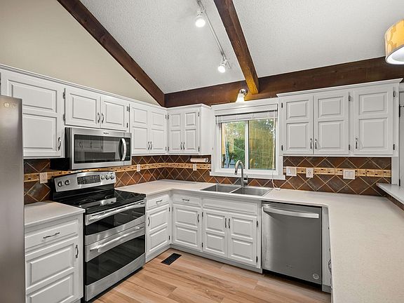 Spacious open design, ranch style home in Sherwood Estates you won't want to miss! Sited on a half-acre lot, you'll love the east facing deck overlooking the large fenced backyard. The new roof, replacement windows, and no-paint siding provide lasting value. Inside, you'll love the updated flooring, bathrooms, overhead lighting, and built-ins. The newly added coffee bar/pantry and main floor laundry are perfect for those wanting more main floor living. The walkout basement with 2 conforming bedrooms and a full bath provide great space for teens and/or overnight guests. All appliances, including refrigerator and laundry set, are included. Required Disclosure: Photos may be enhanced for marketing purposes.