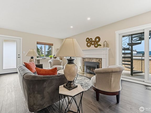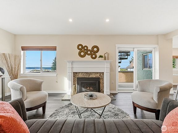 Spectacular Sound, Mountain, And Island Views From Exceptional Home! Completely remodeled property makes this a true custom abode! Polished hardwood floors greet at the front door and continue throughout the main floor. Great room of living, dining, and kitchen offers splendid Puget Sound views. Granite tiled & wood mantled gas fireplace complement the main room. Kitchen is beyond spacious with top-of-the-line stainless steel appliances, tons of custom cabinets, and Quartz countertops. 2-roomy main floor bedrooms with closets, share a stylish modern bathroom. Downstairs Primary Suite is Palatial, has a separate private sitting room, and Prime Luxury bath. Pleasant informal family room is large enough to handle your comfy furniture. Additionally there is a personal office/den on this level, and with separate entrance. Substantially sized utility room with high quality washer and dryer, and lots of cabinets. Newer water heater and gas furnace complete the laundry room. The professionally landscaped grounds are fully fenced in the backyard. Entertainment sized multiple decks and patios offer unobstructed views and are perfect for large parties, and BBQ's. Moreover the main backyard patio has a wonderful Pergola for any type of weather, and gatherings. The garage handles 2-cars, is also perfect for a shop with upgraded power/electrical outlet, plus has had a total refurbished improved look! Hurry this home will not last long on the market!