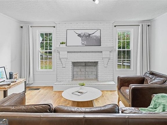 Charming 1880 Farmhouse on 3 Acres with Guest Cottage, Huge Barn & Mountain Views! Step back in time with this beautiful farmhouse nestled on 3 scenic acres featuring mature trees, fruit trees, and stunning views of Sawnee Mountain - all on a quiet, peaceful street. Main Home: 3 Beds / 2 Baths, Primary Suite on Main, Original 1880s exposed log walls, Reinforced floors & Aquaguard crawlspace. Welcoming rocking chair front porch. Guest Cottage/Studio Loft with Bath. Perfect for guests, a rental, home office, creative space, Teen Suite, She Shed, or Man Cave. Huge Barn: Versatile use: Barn, Workshop, RV storage. Plus: 3-bay carport ideal for boats, tractors, cars, or storage. Outdoor Features: Lush, usable land with multiple building sites if you want to expand or build your dream home. Just minutes from the Greenway for outdoor adventures. This is a rare opportunity to own a piece of history with modern functionality and endless potential. Whether you're looking for a family home, rental opportunity, or just a quiet retreat, this property has it all! Convenient Location!