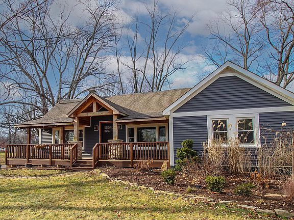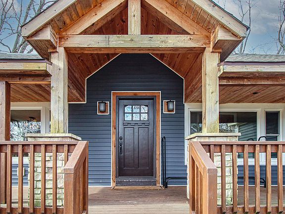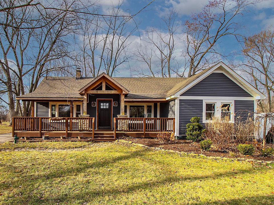 Cabin style four bedroom, two bath home offers stylish finishes and beautiful open floor plan! Gather in the spacious family room appointed with vaulted ceilings, cozy fireplace, built-in shelving, and exterior access. Cook your favorite meal in the gourmet kitchen graced with exposed brick from a 1700s building in Chicago, stainless steel appliances, including a Fivestar Dual fuel gas range, open shelving, and island with breakfast bar. Living and dining rooms are ideal for entertaining guests! Retreat away to your main level master suite presenting a spa-like ensuite with soaking tub and separate shower. Three additional bedrooms and a shared bath complete the home. Huge open yard perfect for relaxing outdoors!