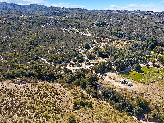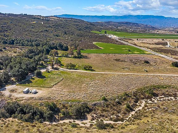 Once in a lifetime opportunity to own a prime 1/8 section- 77 acres backing up to the National Forest. This property has been family-owned for the past 80 years. Before that, the Butterfield Stage Line had watered their horses at the hillside springs. F. Goodendorf subsequently homesteaded the best land in the entire area, opening a Blacksmith shop in 1900, that catered to early travelers. Moist air comes across the Pacific Ocean, crosses the coastal hills, & hits the 5,800-ft Cahuilla Mountain located in the San Bernardino National Forest, dropping rain onto the granite mountainside. On the southwestern slope below the 3,000 ft. level, that rain again surfaces in a large horizontal spring line, dotted by large groves of oak trees & sycamores. 2 horizontal well systems provide bottled-water quality, gravity flow spring water to the 2 water holding structures, & the entire property-Nearby neighbors sold to bottled water companies for years. Located 1.5 hours from either downtown Los Angeles, or San Diego, this property offers about 45 acres of pasture land for horses/ cattle. Otherwise, the land could be developed by wine enthusiasts, as the ground is comprised of decomposed granite soils. These are highly sought-after acres for drip irrigation wine grapes in the Temecula Viniculture district. The Palomar Observatory is 13.5 miles south. Clear air, large mature trees & clean water. There are several beautiful home sites in the oak groves, in the canyons, or along the extended.