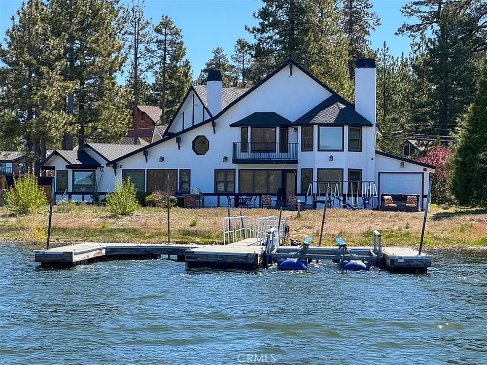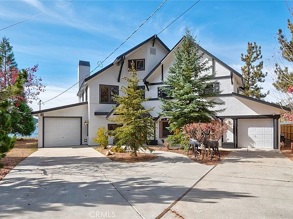 *DEEP-WATER LAKEFRONT* Discover one of the best lakefront settings in BIG BEAR LAKE! At the tip of Gilner Point, this luxury home boasts 130 feet of deep-water lakefront. Fish off the 2-slip dock with a boat lift for unparalleled access to the lake's beauty and stunning sunset views. Enjoy panoramic lake and mountain views year round. With six bedrooms, (four of them en-suite), and five and a half bathrooms, this 4,215-square-foot home is almost entirely remodeled. Featuring two primary suites, one on each level, with heated floors in the downstairs primary bathroom. Enjoy a large game/bonus room with an air hockey table as well as the completely remodeled kitchen with new appliances. Separate laundry room. Two new tankless on-demand water heaters, a new wood-burning fireplace in the family room, dual-zoned A/C and heating, as well as freshly remodeled bathrooms. The entire first floor has new luxury wood-like vinyl, while the interior and exterior have been recently painted. Brand new custom double entry glass doors with top-of-the-line keyless entry system. 2 attached one car garages. Alarm system and security cameras keep your investment safe. Brand new above ground spa and a built in BBQ on the level, landscaped lot with a drip system. With a history of successful rental income, this TURNKEY property comes fully furnished, including all kitchenware, pots, pans, and utensils, providing an easy move into your lakefront dream home. Simply move right in and embrace the ultimate in lakefront living.