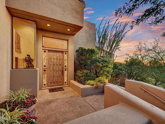 A must-see home in North Scottsdale! The main level features a large guest bedroom with a full en-suite and a convenient Murphy bed for flexible space use. The second level is dedicated to the luxurious primary suite, complete with fireplace, mountain views, en-suite, and den/ exercise room. The third level boasts a reading nook, and two generously sized bedrooms, each with its own en-suite bathroom. This estate combines beauty, privacy and timeless elegance-perfect for those seeking tranquility and sophistication in the high desert.