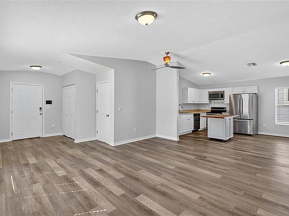 Move-in ready 3BR/2BA block home with 2-car garage in the desirable Central Oak neighborhood! This home offers an open floor plan with fresh interior paint, new carpet in the bedrooms, and abundant natural light. The kitchen features stainless steel appliances, crisp white cabinetry, and a center island that flows seamlessly to the dining and living areas. The spacious primary suite includes sliding glass doors that open to the fully fenced backyard, perfect for pets, gardening, or entertaining. Additional highlights include indoor laundry with washer/dryer, a large garage for parking or storage. Just minutes to vibrant Grand Central District with its award-winning restaurants, breweries, shops, and art galleries, and a short drive to downtown St. Pete, Tropicana Field, and our world-class Gulf beaches. A great opportunity to own in a growing neighborhood close to everything!