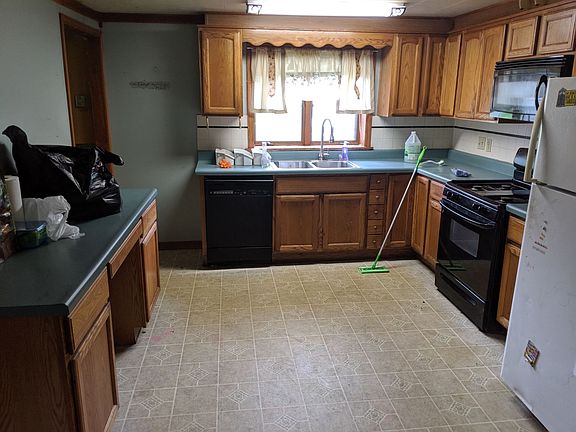 This tri level home in Leavittsburg has lots of potential. There is a large kitchen with oak cabinets and plenty of room for an island or table. Situated on a large lot, there is plenty of lawn and many mature trees. Home will require a good bit of work. Currently has no heating or cooling system, but there is gas to the house. A leak in part of the roof was repaired with new roofing three years ago, as was part of the barn roof. Interior needs areas of drywall replacement, carpet replacement, and some window repairs. There are hardwood floors in the mid level of the home that are in good condition, but just need refinished. The upstairs bedroom closet is plumbed for a toilet and could be made into a master bathroom. The main bathroom is rather large and could be remodeled in a number of ways. This home is very solid and is constructed of concrete block, covered with vinyl siding. With some TLC, this could be a very lovely home. Owner had septic inspected recently and was fixed. Selling as is. Seller will make no repairs.