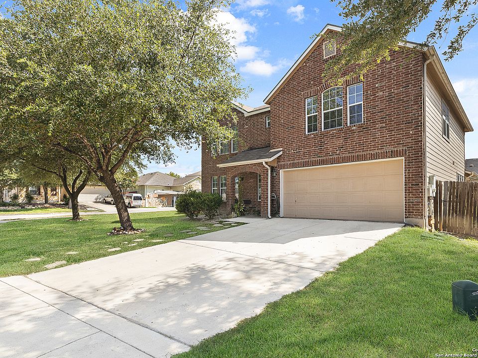 MOTIVATED SELLER! BRING YOUR OFFER FOR CONSIDERATION. CONCESSION AVAILABLE FOR CARPET AND CLOSING. This home offers a spacious backyard-ideal for entertaining or you can transform it into your personal outdoor oasis. Filled with natural light, it combines comfort and functionality in every room. The first floor features a welcoming open-concept layout with a spacious kitchen that includes a dining area, plus both a living room and a separate TV room-perfect for hosting or relaxing with family. Upstairs, the primary suite includes two closets: a walk-in closet off the bathroom and an additional closet in the bedroom. The en-suite bath features a garden tub, glass-enclosed shower, and double vanity. Three additional bedrooms and a generously sized game room complete the second floor, offering plenty of space for guests, hobbies, or a home office. Mature trees enhances the front yard, providing comfort and curb appeal by blocking the morning sun. This home is on Schertz ISD, near Randolph AFB and major roads. The exterior of home has been freshly painted. Don't miss this opportunity to own a stunning two-story home situated on a desirable 0.204-acre corner lot.