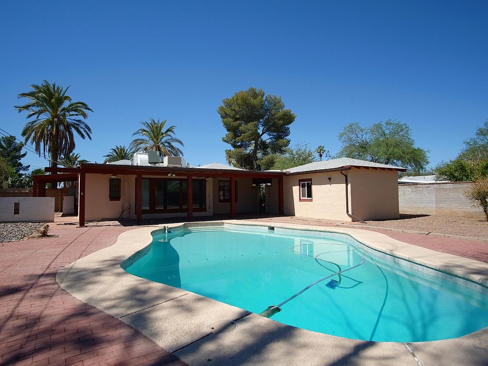 Text for more info or for a walkthrough video. A rare opportunity to Lease a Garden District 3BR/2BA Home with a POOL and GARAGE. This remodeled home has ceramic tile floors and fresh paint throughout the open floor plan; master BR suite with private bath; updated hall bath; security bars; 1 car garage & 2 car deep carport; central A/C; located near Tucson Botanical Garden, Public Transportation, + area parks. 12mo minimum Lease, Costs are: Non-refundable $50/adult Application, $2150 Security Deposit, $150/pet with approved pet, $400 cleaning. Tenant pays all utilities. Pool service included. Renters' Insurance REQUIRED by Owner.