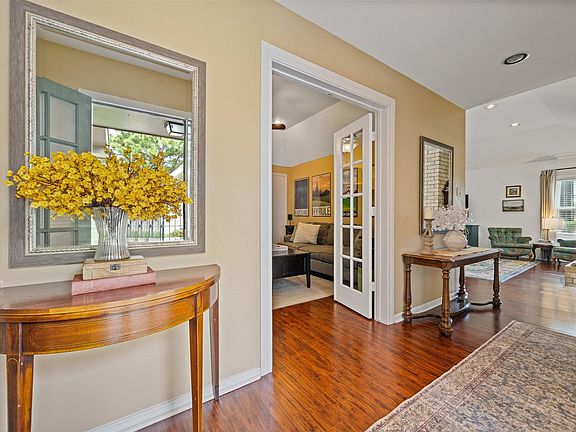 Set on a spacious 8,000 SF corner lot, this home offers rare flexibility and comfort in Bear Creek Village. The inviting living room features vaulted ceilings, abundant natural light, and a cozy brick fireplace. The original courtyard has been enclosed and converted into a versatile home office, media room, or additional bedroom. The primary suite is a private retreat with two walk-in closets, a full bath, and direct access to the backyard, where you’ll find a deck and plenty of space to relax or entertain. Secondary bedrooms provide comfort for family or guests. A long extended driveway gives direct access to the lot next door, creating even more room for kids, pets, or gatherings. Bear Creek Village offers pools, parks, and trails, with shopping, dining, and major highways just minutes away. With a large lot, flexible floor plan, and unique outdoor living options, this home is a standout opportunity in a prime location. Never flooded, per seller; ready for your personal touch.