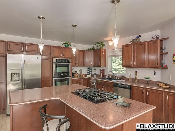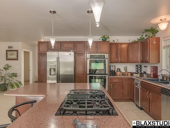 Wow, this home is gorgeous! Up in the hills, sitting at nearly 1600 square feet, this ranch home is amazing! No expense was spared, that is for sure. The kitchen is fully equipped for the chef in the family. With sprawling solid surface counter space, a double oven, beverage refrigerator, a ton of storage there is nothing this kitchen is missing.