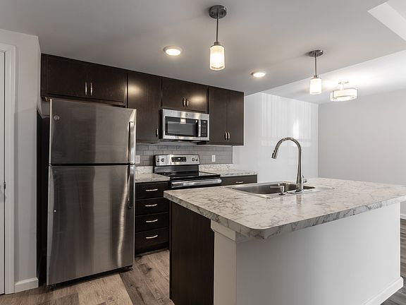 - Exterior features: 1st or Ground Floor Level Apartment, 2nd Floor Level Apartment, 3rd Floor Level Apartment, 6 Panel Doors, Balcony, Built-In Bookshelves, Cathedral Ceiling, Coat Closet, Custom Closet Shelving, Garbage included in rent, Ice Maker, Kitchen Island, Kohler fixtures, LED Flush Mount Ceiling Lights, New Bath, New Windows, On Call Maintenance, Open Kitchen Layout, Pendant Lights, Recessing Ceiling Lights, Stainless Steel Appliances, Subway Tile Kitchen Backsplash, Trademark Series - Gray Interiors, Upgraded Legacy Unit