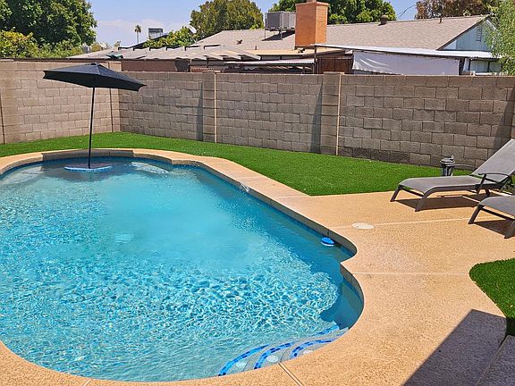Fully furnished home! Available for 12 month lease or longer. Enjoy the pool and turf back yard all year long with Low maintenance. Master bedroom has a King size bed, private bathroom and walk in closet. Includes weekly pool service!