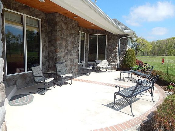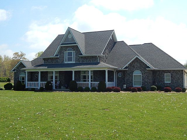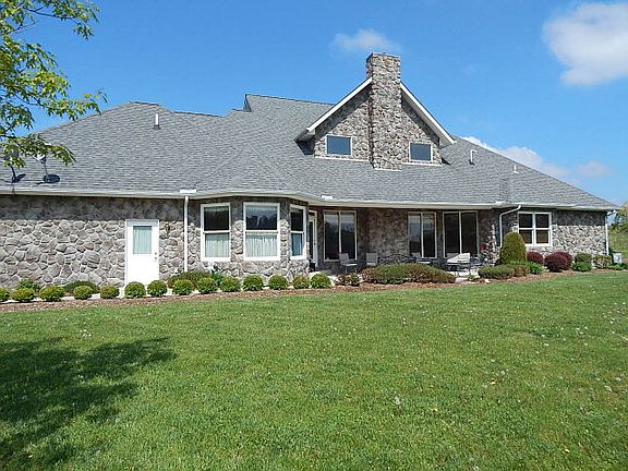 This spectacular all STONE home offers many unique features. Stone fireplace w/insert in great room, eat-in kitchen w/lg. pantry & quartz countertops, lg. windows w/custom curtains, 3-4 BR, 2 baths, lg. bonus/game room on the 2nd floor w/pool table, spare room/office on 2nd floor, 3 car attached garage, 3 car detached garage with bonus room above, designed hardwood floors & amazing view of lake.