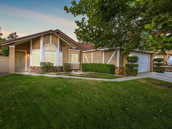 Gorgeous home in West Palmdale. This home features beautiful curb appeal with a landscaped front yard and oversized driveway. Inside you will find a spacious and open floor plan perfect entertaining. The living room is spacious with tons of natural light and a large built-in cabinet. The kitchen has been updated with white cabinets, white appliances, beautiful countertops and connection to the family room. The family room has a fireplace perfect for winter. There is a large master bedroom with a closet and an attached bathroom. There are 3 additional guest bedrooms and one guest bathroom. Outside you will find a covered patio, firepit, gorgeous landscaping and a shed for extra storage. This home is an entertainer's dream and a MUST see!