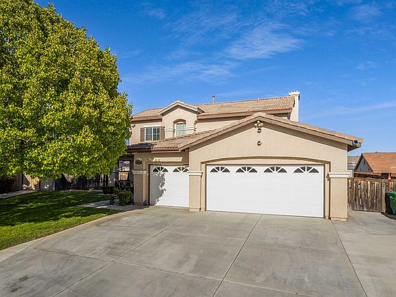 Welcome to 39418 Rowen Ct, nestled within the beautiful city of West Palmdale. This stunning property offers 5 bedrooms, 3 full baths, and a spacious 2,354 sq. ft. of living space, all within the confines of a tranquil cul-de-sac. As you step inside, you'll be greeted by the main floor featuring beautiful bamboo flooring and a natural tone interior paint color, creating a warm and inviting atmosphere. The spacious kitchen boasts oak-tone cabinets with hardware, stainless steel appliances, and granite counters with a breakfast bar, perfect for entertaining guests. All bedrooms are equipped with ceiling fans for added comfort. The primary bedroom offers neutral-tone laminate flooring and a soft taupe wall color, creating a tranquil retreat. The on-suite bathroom features plenty of cabinets, dual sinks, a separate tub, a shower, and a spacious walk-in closet.