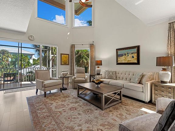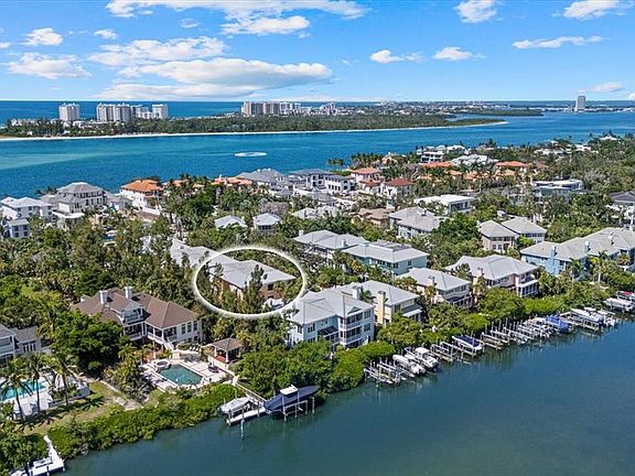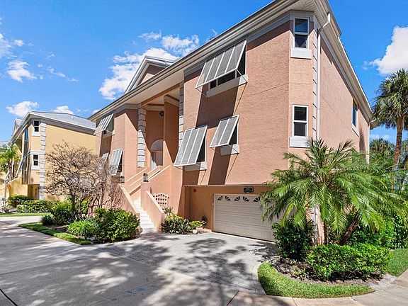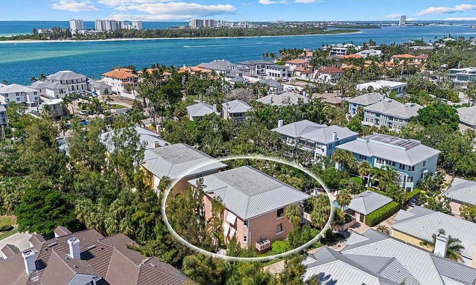 Enter a coastal residence where architectural vision, designer finishes and direct access to the water create an exceptional lifestyle on Siesta Key. In the gated waterfront community of Hamilton Club, this fully reimagined home includes a private deeded dock on deep water, offering instant access to the Intracoastal, Sarasota Bay and the Gulf. Inside, the renovation reflects thoughtful design and custom craftsmanship throughout. The great room makes a dramatic impression with 20-foot ceilings, a floor-to-ceiling quartz feature wall with fireplace, floating wet bar, and glass sliders opening to a screened balcony overlooking the pool and pond. The kitchen was completely redesigned with imported cabinetry, premium appliances by Miele, Bosch, GE and KitchenAid, granite counters, and lighting that elevates function and style. An oversized two-car garage with additional golf cart space and additional storage adds a level of convenience rarely found in a coastal property. The residence offers three en-suite bedrooms and a loft, including two separate primary suites. The main floor suite features its balcony and spa-style bath. Upstairs, the primary suite includes a custom fireplace accent wall, walk in closet, and a travertine wrapped bath with freestanding tub, glass enclosed shower and extensive cabinetry. A third guest suite and spacious loft with custom iron railing complete the upper level. On the ground floor, a large climate-controlled bonus room with a half-bath opens to the lanai and offers flexible space for recreation, hobbies or fitness. Impact-rated windows, custom railings, hardwood floors, Nest thermostats, and central vac contribute to a lock and leave lifestyle with comfort of a single-family home. Hamilton Club is a private enclave of just 18 residences with a heated pool and tennis court, minutes from Siesta Village, Shell Road beach access and sugar sand shoreline of Siesta Beach. This is a rare opportunity to enjoy boating, privacy and elegant coastal living in an intimate, gated setting.