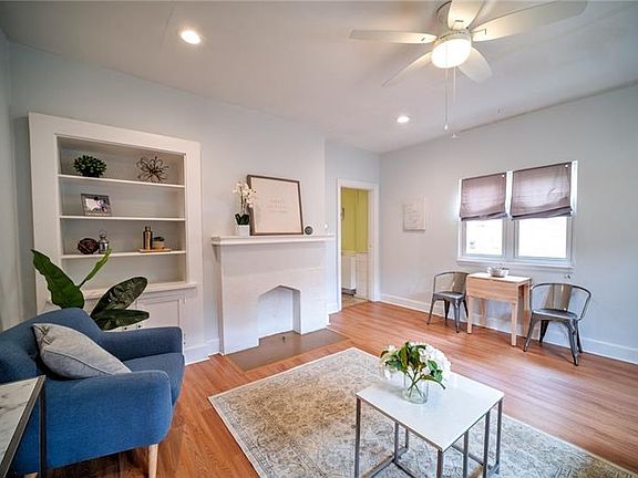 Live in the middle of it all and still have a great yard in this cute, super-efficient home in Lawrenceville. Move-in ready with a newer kitchen, featuring a stainless refrigerator and gas stove, and the best part, a dishwasher! Updated bathroom and refinished, rustic wood floors upstairs. The fenced front yard is your oasis in the middle of the city, and an excellent spot for Fido to play. The raised bed is in place for your garden this summer.