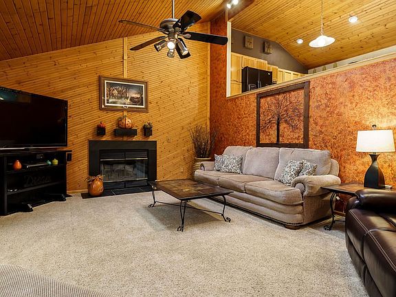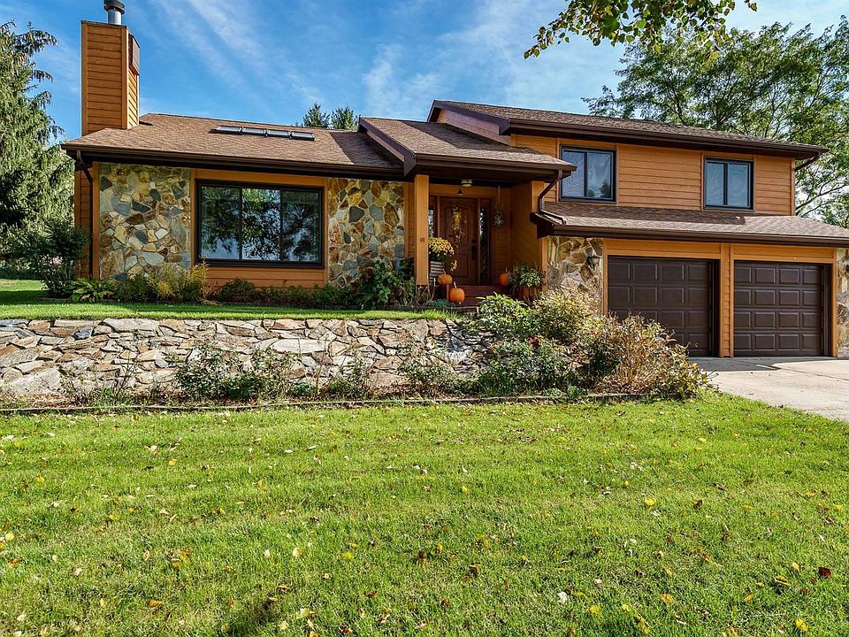 Super sharp custom-built raised ranch in Roscoe, well maintained and move-in ready! Half acre lot and mature trees offer privacy. Wireless fencing around entire lot. Quality and attention to detail through-out. Large living room features wood burning fireplace, 16 ft ceilings in living room with large windows, 4 skylights and open views to the kitchen provide lots of natural light. Combined kitchen dining room features granite counter tops, warm wood custom cabinets, hard wood and ceramic tile flooring, 12 ft ceilings, sliding door to the extra-large deck and brick paver patio with firepit. The openness and flow is great for entertaining. The master bedroom suite features a private sunroom with access to deck, walk-in closet, large vanity and tiled shower. Two additional spacious bedrooms, laundry, and another full bath round out the main living area. L/L features a huge family room with log cabin siding and hard maple ceiling tiles. L/L access to third garage (Tandem) which can also be a workroom. Crawlspace for tons of storage. All doors and windows 3 yrs old w/transferrable lifetime warranty (except front door). Furnace 2012, A/C 2020. Brand new roof and 8 skylights 11/2021.