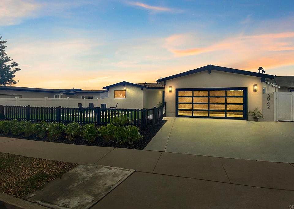 The seller is offering a credit toward a rate buy down for all buyers. This MUST SEE fully remodeled home with an open floor plan is in the heart of San Diego and blends modern style with inviting warmth. This home exudes curb appeal with new sleek black fencing, a sleek architectural garage door, and a welcoming courtyard complete with firepit seating and new landscaping—perfect for gathering with friends. Step inside to a top-to-bottom transformation featuring new LVP flooring, baseboards, doors, and black-framed windows that fill the open living space with light. Fresh paint inside and out, modern ceiling fans, and thoughtful design touches create a move-in-ready home that feels brand new. The living room flows seamlessly into a stunning chef’s kitchen and dining area, where beautiful light colored cabinetry, a custom tile backsplash, and an oversized waterfall island with bar seating become the centerpiece. Gold accents and new appliances complete the space with a touch of luxury. The private backyard, with fresh drought-resistant landscaping, connects to the front courtyard for a true indoor-outdoor lifestyle. Inside, the spacious primary suite offers an updated ensuite bath with a walk-in waterfall shower. Two additional bedrooms share a remodeled guest bathroom with a tiled shower/tub combo, perfect for family or guests. The large garage with fresh epoxy flooring adds both style and functionality, while major upgrades—including new plumbing and electrical—bring peace of mind. Located just steps from Mount Acadia Park and close to Tecolote Creek trails, schools, shopping, restaurants, and freeway access, this home is as convenient as it is beautiful!