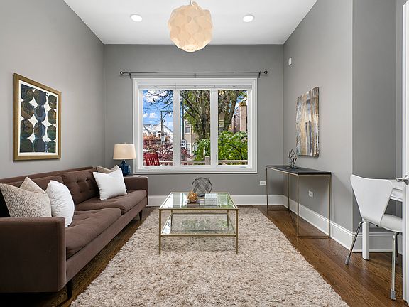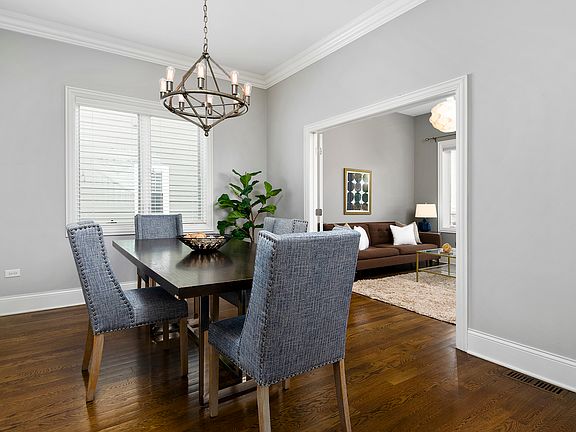 Situated on a corner lot allowing for incredible natural light, this extra-wide brick and hardie board 5bed/3.1 bath SFH is ideally located on quiet tree-lined Marshfield, within walking distance to both the Southport Corridor and shops along Lincoln Ave and within coveted Blaine School District. This stunning home features a rare attached garage, with gorgeous transitional finishes including hardwood flooring throughout, beautiful millwork, soaring ceiling height and ideal floor plan including 4 bedrooms on the 2nd level. The main level is flanked by a covered front porch and opens to a foyer entry with oversized coat closet and wide staircase with beautiful runner. The front room can double as a formal living room or office space with french doors for sound proofing and leads to a large dining room with separate butlers pantry with prep sink, beverage center, and glass front cabinetry. The chef's kitchen boasts a massive island, commercial grade appliances including an oversized Viking fridge and double oven with griddle and walk in pantry. The kitchen opens to an eat-in banquet, additional desk, and massive family room with gas fireplace, access to the deck and turfed backyard and separate, oversized mudroom complete with pet shower and direct access to the attached garage. The bedroom level features an oversized primary suite with 2 walk-in closets and gorgeous spa like bathroom with marble and oversized dual vanity with tons of storage. 3 additional bedrooms, a full bathroom with dual vanity, laundry room and small office with built-in shelving complete this level. The lower level offers a large recreation/media room with chalkboard wall, a full bathroom, additional bedroom with walk-in closet and an oversized storage room. The house includes 2HVAC systems, skylights for natural light, incredible outdoor space and within walking distance to shops, restaurants, transportation, schools, parks and all that this highly desired neighborhood/location has to offer.