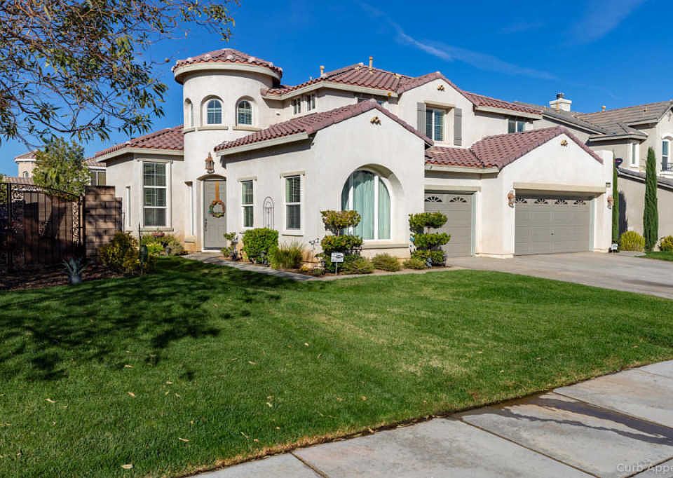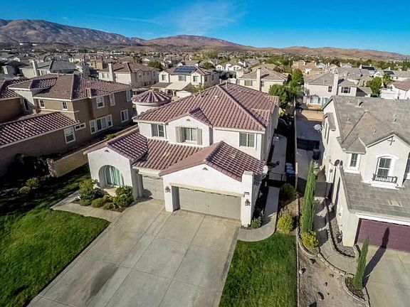 West Palmdale Beauty This 3300sqft 5 Bedroom 3 Bathroom plus loft and an office up stairs has a large open floor plan. This Home has one bedroom and bathroom down stairs. Huge master bedroom with dual ceiling fans with his and hers master bedroom walk in closets. New laminate flooring throughout the first floor and in all the bathrooms. Ceiling fans in every bedroom with adjustable lighting in most rooms of the Home. Fire place in the Family room that can be enjoyed from the kitchen area. Large formal dining room and formal living room, with a bar to entertain all your guests. The covered patio will allow for an entertainers delight!
