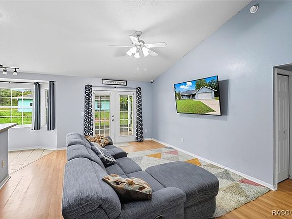 JUST THE RIGHT SPOT TO PUT DOWN ROOTS & BUILD YOUR MEMORIES! This charming 3 bed/2 bath home sits on .22 acres and is located on a quiet street in Inverness Highlands North, which is a community known for its peaceful, easy-going atmosphere. The 1,435 sqft of living space has everything you need to get the ball rolling. Just add your personal flair to make it your own and live happily ever after. No time lost or money wasted on big ticket maintenance with the roof being replaced in 2019, HVAC in 2020 and hot water heater in 2022. The covered front porch welcomes you with a NEW storm door and upon entry the warmth of the foyer draws you in. The NEW French doors in the living room open to the covered, screened lanai, flooding the home with an abundance of light and providing for additional space for entertaining family and friends. The FRESHLY PAINTED interior with its open floor plan and vaulted ceiling add to the appeal. The galley kitchen packs a whole lot of potential with its functional design, tiled floor, tiled backsplash and raised breakfast bar, all while serving both the dining room and breakfast nook at either end. A pantry closet for convenience and a bay window for enhanced views are located in the breakfast nook. The master bedroom features a walk-in closet and ensuite with dual sinks, makeup desk and tiled shower/ tub combo. The fenced backyard is a plus and the outdoor space is a clean palette with plenty of space for a pool, shed or anything else your heart desires. The exterior of the home is scheduled to be painted in October 2025 or a credit at closing is an option; your choice. There is an additional 100’x120’ lot adjacent to the home that is available to purchase. NO FLOOD ZONE! NO HOA & NO DEED RESTRICTIONS! Only a short drive to schools, doctors’ offices, hospital and other necessities and conveniences. There are 3 city parks, Whispering Pines, Wallace Brooks and Liberty Park less than 5 miles away. It is about 10 minutes to the public boat ramp for Henderson Lake & The Tsala Apopka Chain of Lakes to enjoy boating, fishing, bird watching and spending time outdoors. If indoor activity is your thing, Downtown Inverness by the Courthouse Square is less than 8 minutes away for restaurants, shopping and the Historic Valerie Theatre. FREE 1-YR HOME WARRANTY for PEACE of MIND is OFFERED to the BUYER!