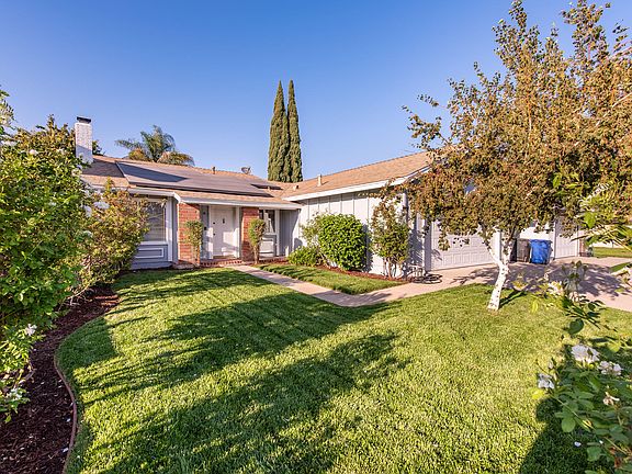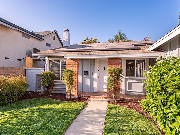 Wonderful cul-de-sac location, this single story updated 3 bedroom, 2 bath home offers a granite kitchen with a pantry closet with pull-out sliding drawers, recessed lighting, a breakfast bar, a double oven, a microwave and is open to the family room with direct access door to the 2-car garage with laundry hookups and a slider to the huge covered flagstone patio and grassy backyard with lush landscaping. The combo living/dining room offers a vaulted ceiling and a fireplace. There are two secondary bedrooms, an updated hall bathroom with a granite countertop and a jetted tub, and a master bedroom with French doors leading to a flagstone patio and grassy backyard. The updated master bathroom has a granite countertop, a shower over jetted tub with a custom tile surround. Other features include updated dual paned windows, ceiling fans, raised panel interior doors, automatic timed irrigation in front and back, fresh exterior paint. 1310 sq. ft. of living space and sitting on a 5,958 sq. ft. lushly landscaped lot. Convenient to parks, great schools, walking paths, hiking trails, shopping, restaurants, and just a short distance to the 118 Fwy. for the commuter. Wow!