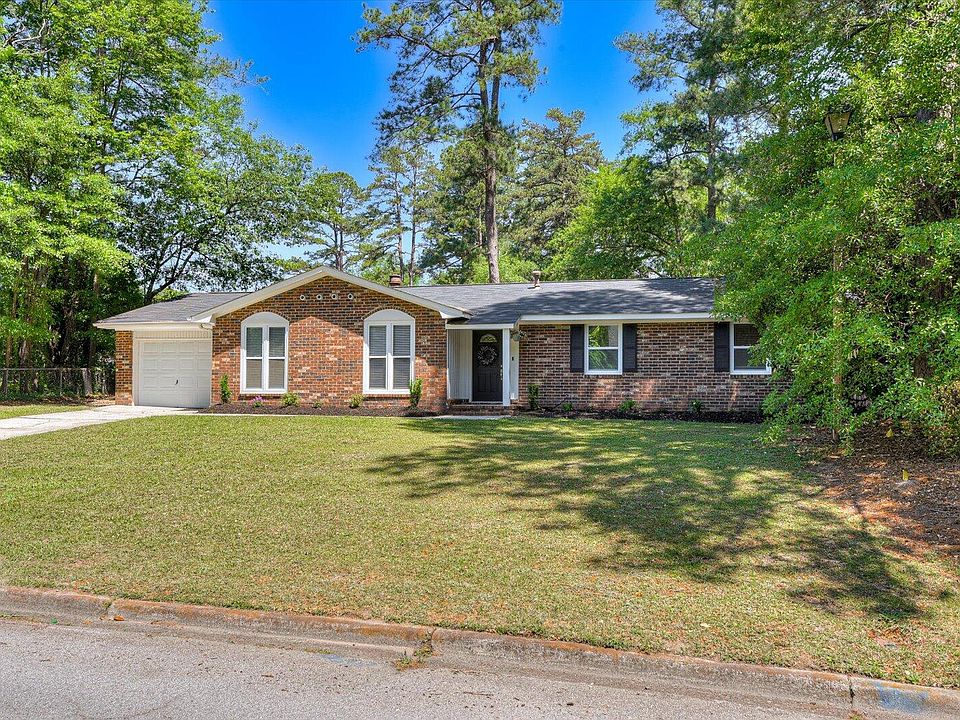 Fabulous Four-sided Brick Ranch Home in the desirable Columbia County! This Move-in Ready Ranch is Updated and approximately 1,600 SQFT with 3 Bedrooms, LVT Floors, a Formal Living Room & Den & Formal Dining Room & Eat-in Kitchen. The Kitchen offers Granite countertops with Chic Grey Tile Backsplash & Stainless Steel Appliances. The Primary Bedroom suite is Spacious with matching designer tile in the Walk-in shower and Bathroom floor. Two additional bedrooms are located centrally to a Shared & Sizable Full Bathroom. Walk outside to a large covered patio overlooking the huge, fully fenced backyard. Additional features include a New Roof, New HVAC and New water heater replaced in 2019. Located just seconds from I-20, Bobby Jones Expressway & Fort Eisenhower. No HOA & Zoned to Columbia County Schools!