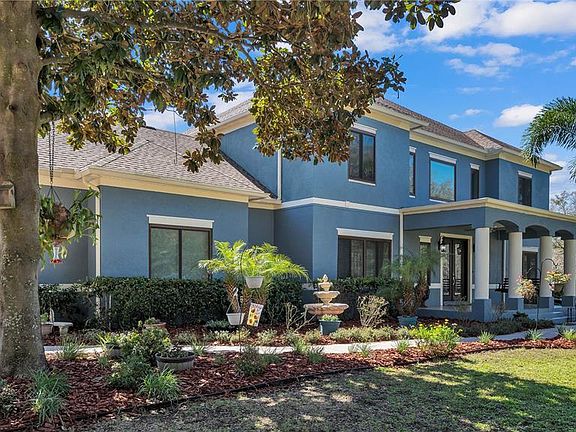 Luxury estate in Central Florida featuring a VA assumable loan at 2.5 rate, zoned for horses and approved for a home-based business. Nestled on nearly two acres in North Lakeland, this property offers privacy on a quiet drive with only seven homes in the community—providing a peaceful rural setting while still conveniently located near local amenities with access to Tampa or Orlando. Step through the new 8-foot French doors into a grand foyer boasting soaring 25-foot ceilings, where you will be welcomed by an inviting living area—perfect for entertaining—featuring a stunning gas fireplace for cozy evenings. The remodeled chef’s kitchen showcases quartz countertops, solid wood cabinetry, stainless steel appliances, a gas stove, and a custom hood. The primary suite is conveniently located on the first floor and includes spacious walk-in closets. Upstairs, you will find five additional bedrooms, a Jack-and-Jill bathroom, and a generous walk-in closet. Performance features include Category-5 Anderson windows and doors, a newer roof (2021), three A/C units (2022), upgraded attic insulation (2023), and a new 74-gallon propane water heater. Additional upgrades include electronic blinds, Ring security cameras, and a dual laundry chute connecting to the first-floor laundry. Exterior highlights include a 50-amp RV hook-up, two utility sheds with electric, and an oversized garage. Outdoor living is enhanced by two covered porches, a side patio, and a well-fed irrigation system. Best of all, there’s no HOA or CDD.