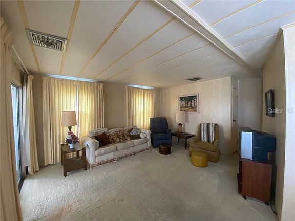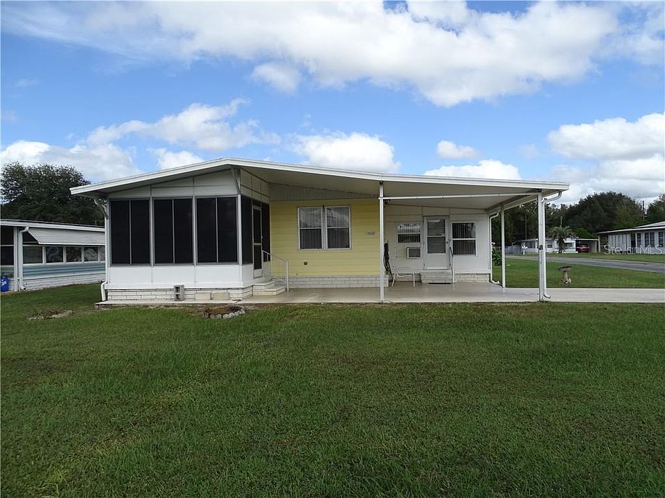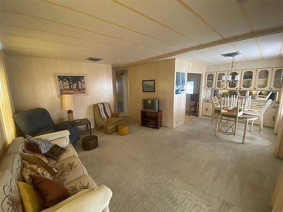 GEM ESTATES 2 BEDROOM 2 BATH HOME ON BEAUTIFUL CORNER LOT!!!! This home comes furnished and ready for you. This home offers not one but two Florida rooms. The one to the right of the home is HUGE 38x12 and houses a nice gathering/sitting area and your laundry room. No need to go "in and out" and up and down stairs in order to get laundry done! The Florida room in front is perfect for enjoying a cup of coffee or your evening drink on a beautiful Florida day. Great kitchen with eating space/ large pantry and all appliances are included. Dining area with built in China cabinet is just off of the kitchen. Large family room is perfect for hosting guests. Private master suite sits in the back of the home with large walk-in closet, vanity and separate area with walk in shower. Guest room is comfy as can be with bath just across the hall. Outside you'll find the perfect carport, helping ensure you will never get wet unloading groceries. Attached shed in the back of this home can house your outside toys. Large side and backyards. You own the land in Gem Estates, so no lot rent here. Bring your pets and come enjoy the Florida weather! Gem estates is centrally located and close to dining, shopping, theater, medical centers, and hospital. Call for your private showing!
