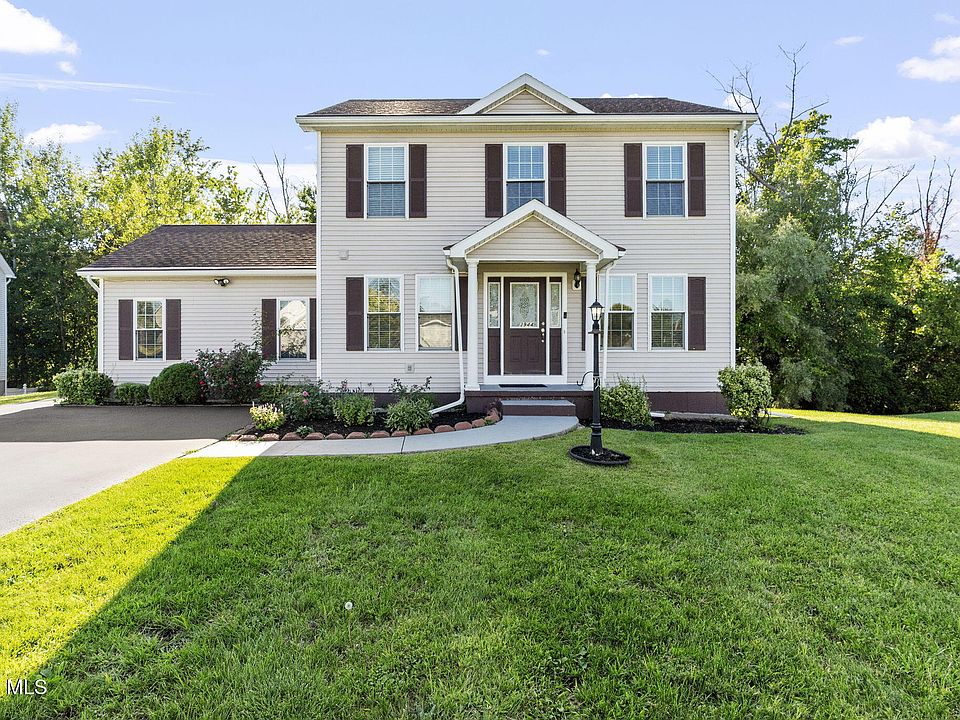 Welcome to this charming 3 bedroom, 2.5 bath Colonial in the desirable South Colonie School District! Set on a generous .67-acre lot, this home offers nearly 2,000 sq ft plus a finished basement for extra living space. A stunning marble staircase greets you at the entry, while the spacious layout includes a bright living room, dining area, and versatile kitchen. Upstairs features a primary suite with a walk in closet and two well-sized bedrooms and a full bath. Enjoy your private backyard oasis from the covered patio overlooking mature trees. Garage was converted into an additional living space and can easily be converted back to a heated garage. With plenty of room inside and out, this property combines comfort, character, and convenience in a great location. Agent is related to Seller.