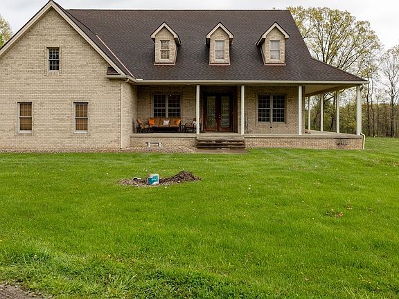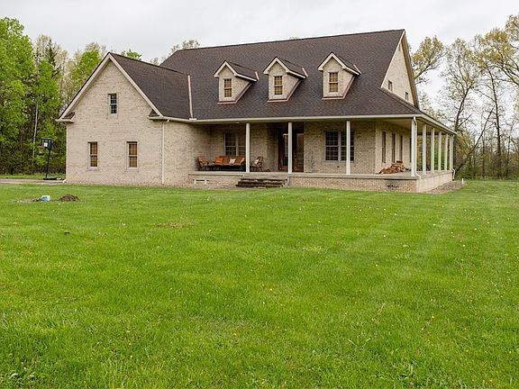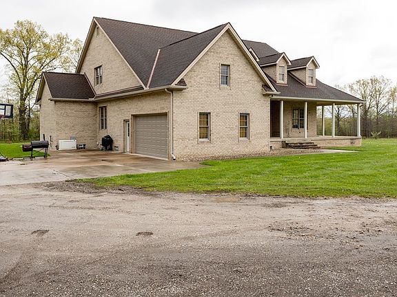 Looking for a house with a country setting but not far from town? Located on 5.29 acres, including a stocked pond, this beautiful custom built all brick ranch home has everything you need: 4 bedrooms, 2 1/2 baths, granite kitchen countertops, hardwood and ceramic flooring, soaring 10 foot ceilings throughout the main level, a spacious first floor master bedroom with on suite, wood burning fireplace, designated office, cozy screened in back porch, wrap around porch. The list goes on and on. Additional square footage can be found in the walk in finished attic bonus room which includes: a bedroom and full bathroom, a large area that could be used as a playroom or a mother in law suite. Never worry about losing power with the back up generator. There is also a 3 car detached garage with loft. This is truly a great property and house.
