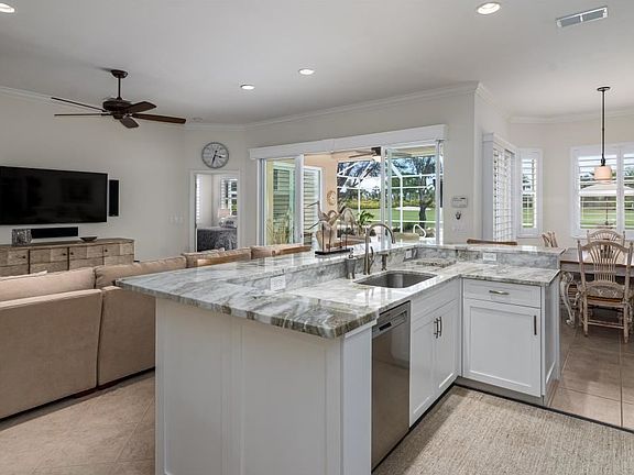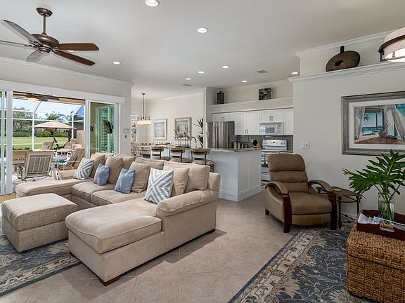 "One of a kind" Dover open floor plan with over $60,000 in improvements and upgrades. This attached villa has golf and lake views, two bedrooms, two baths, plus den, two car garage and comes partially furnished. The kitchen has been upgraded with beautiful quartz counters, newer stainless refrigerator, dishwasher, and the tile backsplash is the perfect pop of color that compliments the sleek and modern look. Some of the many upgrades include a privacy wall, hardwood flooring in the master bedroom, plantation shutters, crown moulding, electric storm shutter in the covered lanai area, impact glass, and so much more...Cedar Hammock is a Gordon Lewis and Jed Azinger designed 18 hole championship course with more than 50% of the community dedicated to lakes, wetlands, and wildlife corridors. There are 4 heated community pools, 4 lighted Har-Tru tennis courts, Clubhouse with dining at the Grill Room and full service Dolphin Bar in the pool area. Cedar Hammock location is close to the beaches, the historic areas of downtown 5th Ave and Third St with shopping, dining, and theaters.