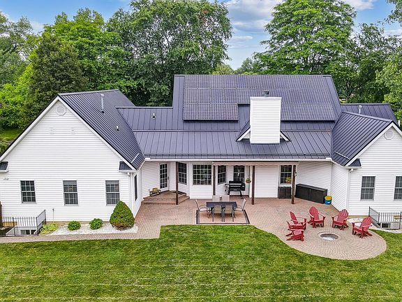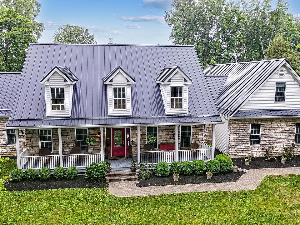 Beautiful cape cod home on 2.5 acres in Olentangy schools just minutes from Alum Creek. Enjoy the picturesque setting with the stream in the front yard and stocked pond. First floor and finished attic space gives 3325 SF with an additional 2000 SF in the finished basement. Five bedrooms complete with 1st floor master AND mother-in-law suite. Finished basement includes a bedroom, full bath, theater area and FULL KITCHEN complete with all appliances and dining area. Floor plan is perfect for MULTI-GENERATIONAL LIVING. Free standing garage holds 4-5 cars with a finished 800 SF loft space. Home has 66 solar panels which holds income potential. Peaceful backyard setting with covered porch, paver patio and fire pit. So much thought and care has been put into this home with so many updates!
