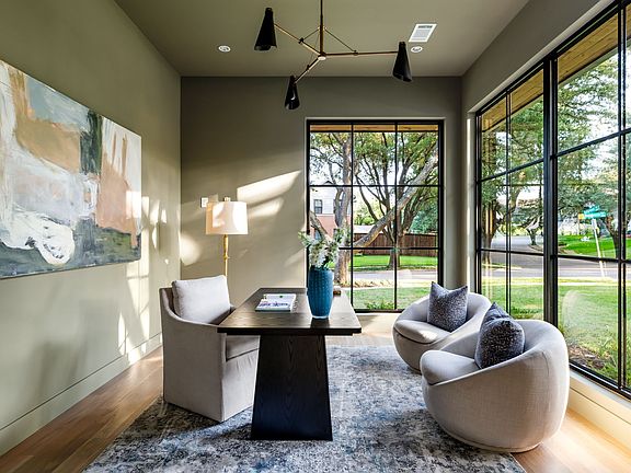 Located on a tranquil,tree-lined street in one of Lakewood’s most coveted neighborhoods,this stunning custom home by Fairmont Homes exemplifies refined transitional design.Positioned on a rare .30-acre private corner lot,the residence highlights exceptional craftsmanship,thoughtfully curated finishes,& premier amenities—delivering an elevated lifestyle just steps from the shores of White Rock Lake.Majestic,towering live oaks surround the home,while the rich patina of natural brick & lush landscaping evoke a timeless,established presence.Inside, soaring 11-foot ceilings & dramatic floor-to-ceiling windows create a light-filled,open atmosphere. Warm,inviting tones carry throughout,complemented by white oak hardwood floors,beautiful millwork,& smooth-finished walls with subtle plaster detailing.The kitchen is a true showstopper,featuring top-of-the-line Thermador appliances,a pantry that exceeds expectations,& a phenomenal banquette breakfast nook designed for everyday elegance.From the kitchen, white oak portals lead into the inviting family room,anchored by a striking fluted concrete fireplace.The space flows effortlessly into the dining room, complete with a sleek wet bar & integrated wine storage.With an effortless indoor-outdoor flow, both the kitchen and family room open via sliding doors to the expansive rear loggia overlooking the pool.Complete with an outdoor kitchen,phantom screens,& in-ceiling heaters,the space is perfectly designed for comfortable entertaining in every season.The sleek modern pool is paired with a huge turf yard,creating a resort-like retreat visible & accessible from the living & dining areas.The study captures sweeping views + private spacious guest retreat.Upstairs you will find the incredible primary suite with spa inspired bath + three spacious secondary bedrooms—each with its own en-suite bath & walk-in closet—alongside an impressive game room & a versatile flex space, ideal for a home gym or second office.Oversized 3 Car Garage