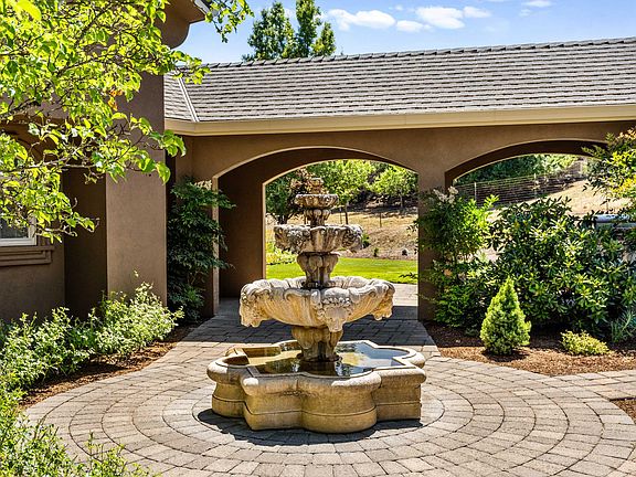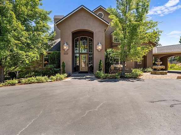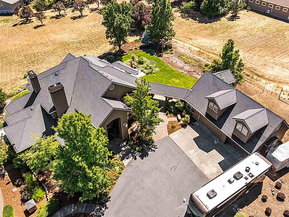 This is the reason why people want to live in Southern Oregon; this Pagnini-built country estate is located at the end of a private drive minutes from historic Jacksonville on 2 acres, providing a comfortable quiet country feel w/ the conveniences of town. Lots of room for hobbies w/ a semi-detached finished 3+ car garage, RV parking, & 770 sf guest quarters w/ a full bath & kitchenette. The Tuscan style home features an open floor plan w/ soaring ceilings & lots of natural light, w/ amazing mtn & valley views. Downstairs has chef's dream kitchen w/ sub zero fridge, double ovens plus convection oven & Wolf gas range & warming drawer, a huge island, & a butler pantry w/ a wine fridge & walk in panty. The downstairs also features both informal & formal dining areas, & the LR has a gas f/p w/ built-ins. The primary bedrm is on main floor & features a gorgeous ensuite bath & an office w/ built-ins. Two additional primary bedrms are located upstairs. Well produced 11.4 GPM when last tested