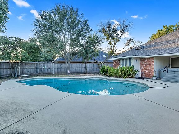 The primary suite gives you a comfortable retreat with its own private bath, while the additional bedrooms are perfect for family, guests, or even a home office. Step outside and you’ll find the true highlight—a sparkling pool with a diving board and a covered patio where you can relax, grill, or host summer get-togethers.