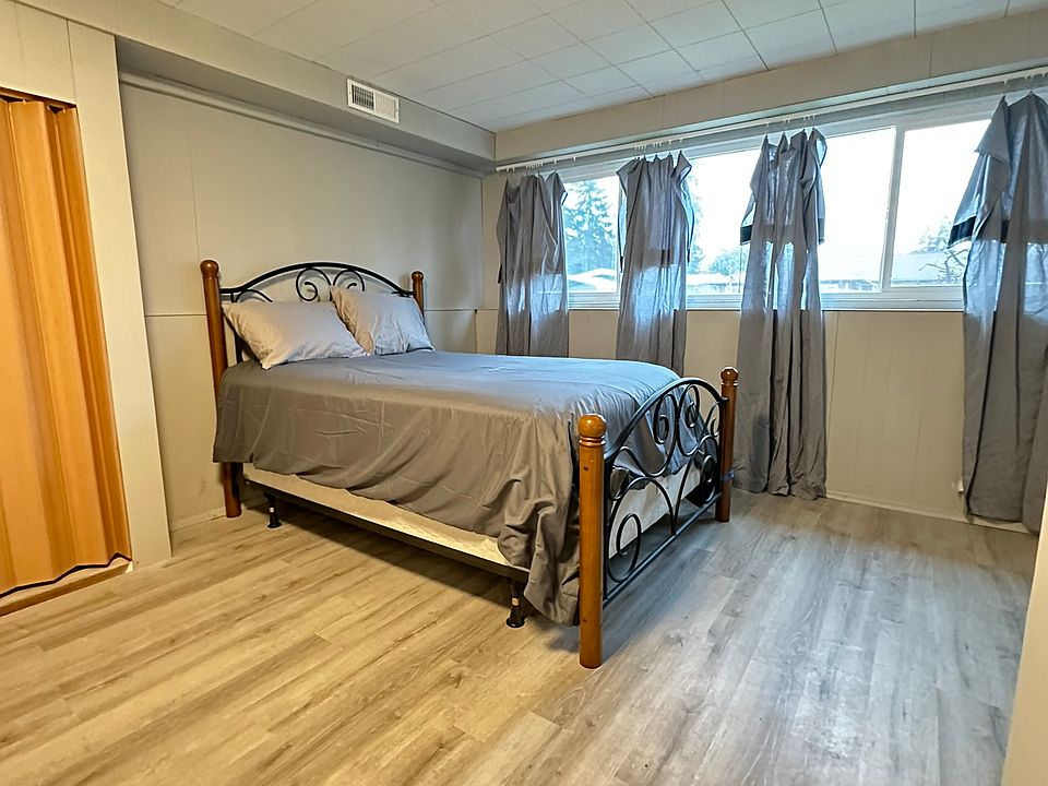 ~Furnished room with a Full/Queen-size bed, bedroom, in-unit washer/dryer, kitchenette, closet, private entrance with keypad
