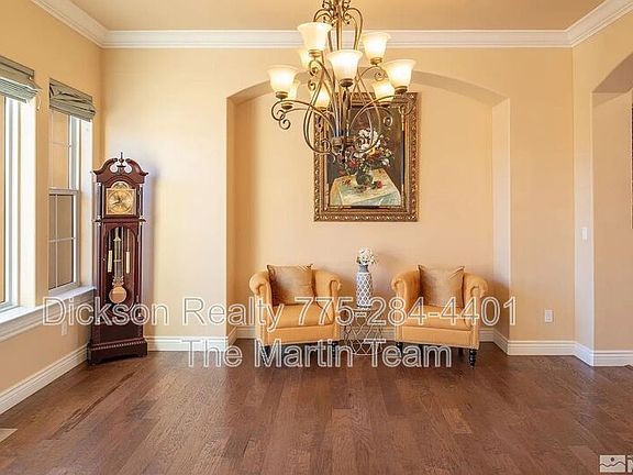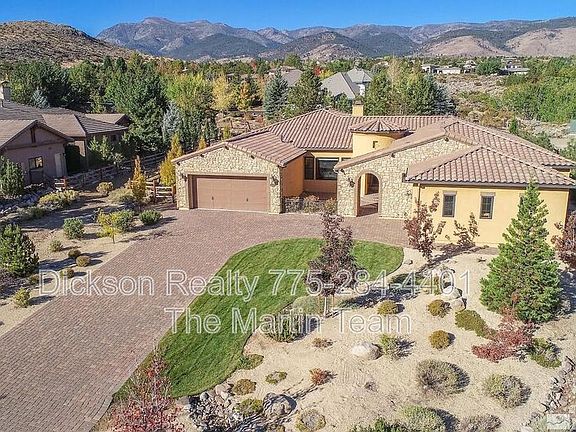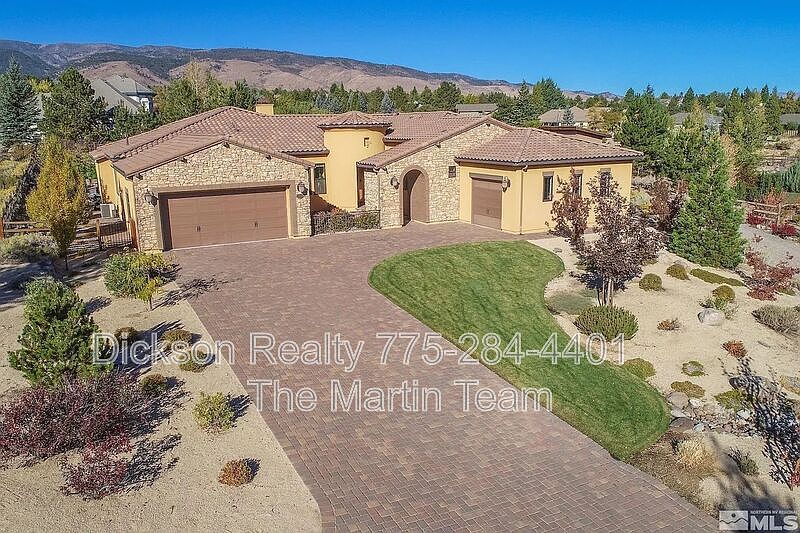 AVAILABLE NOW!Discover the epitome of luxury living in this custom-built 4-bedroom, 4.5-bath home, nestled in a premier gated community in South Reno. This property is not furnished. Set on a generously sized private lot with breathtaking views of the Sierra Nevada, this upscale residence features an open floor plan filled with natural light and soaring high ceilings. The home has been updated with luxury shutters throughout. The chef's kitchen is a culinary dream, featuring rich cabinetry, top-of-the-line stainless steel appliances, including double ovens, perfect for cooking enthusiasts. The primary bedroom suite features two walk-in closets, while the adjoining bath serves as a true retreat, complete with a stand-alone tub, oversized walk-in shower, dual sinks, and double toilets. Each of the other 3 spacious bedrooms comes with an attached bath and walk-in closet, ensuring ultimate comfort and privacy. The inviting living area includes a gas fireplace, built-ins, and opens to a beautifully landscaped courtyard. The serene backyard offers paver patios and a calming water feature, ideal for relaxation and entertaining. An added perk is the Tesla charger, installed in the garage and ready for use. Conveniently located near Mt. Rose Ski Resort, hiking, Lake Tahoe, and top-tier shopping, dining, and schools, this luxury home offers the perfect blend of elegance, comfort, and convenience. Small pets are allowed with owner approval. A refrigerator is provided for tenant use, and the owner will provide a brand-new washer and dryer for an additional $100/month if needed. Don't miss out on this exceptional opportunity, schedule a showing today!
