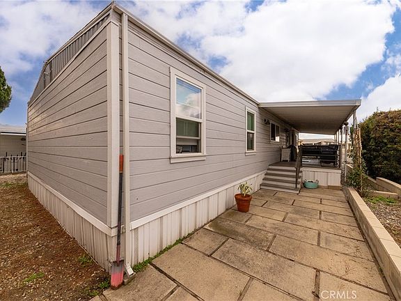 Wonderfully Charming Double-Wide Mobile Home in Active 55+ Community! Located in the desirable community of Casitas La Verne, this 2+BR/2BA property captivates with a covered front porch and a grand double door entry. Remodeled in 2016 with new drywall and new insulation, the stunning home dazzles with an openly flowing floorplan, bamboo shades, scraped oak laminate flooring, thick baseboards, large living room, office/3rd bedroom, and an open concept gourmet kitchen featuring stainless-steel Kenmore appliances, quartz counters, softclose cabinets and drawers, a built-in microwave, a dishwasher, and a gas range/oven. Blissfully relax in the primary bedroom with a deep, double closet and a spa-inspired en suite boasting a