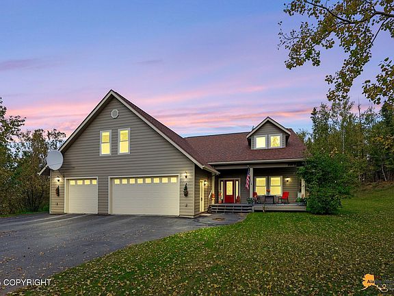 Spacious & Inviting Home on 2 Acres in the Heart of TownWelcome to a beautiful and thoughtfully designed 4-bedroom, 4-bath home nestled on 2 acres in a central location. Tucked away for privacy yet close to everything, this warm and welcoming home offers both a cozy living room and a spacious family room--ideal for everyday living and entertaining. The oversized 1,080 sq ft three-car garage gives you all the space you need for vehicles, gear, and more. Inside, you'll find custom slate tile accents, 9' ceilings, and a flexible layout with a main level primary plus a second bedroom that is a perfect guest space or office. Bedrooms 3 and 4 both include fun loft spaces perfect for play, hobbies, or a quiet reading nook. The kitchen features gorgeous hickory cabinets and a layout that's both functional and inviting. Come home and relax on the covered deck, already wired for a hot tub and glass of bubbly! Set in an unbeatable central location off Seward Meridian Parkway just 5 minutes from the Glenn Hwy, this home offers one of the best commuting spots in town with quick access to shopping, schools, and major routes while still enjoying the space and privacy of a large lot. A rare opportunity to enjoy space, comfort, and convenience all right in the middle of town.