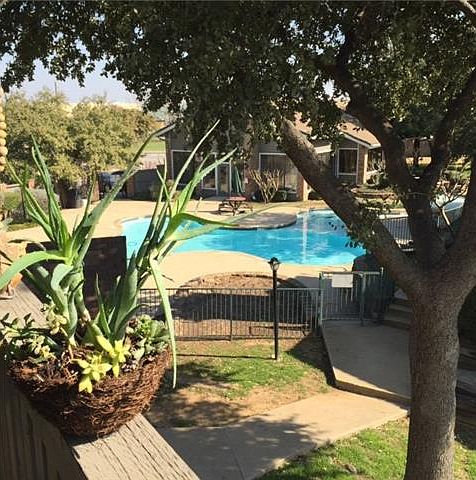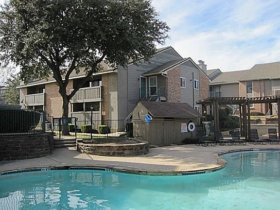 Gated access condominium in great location close to DFW Airport. Really Large one bedroom condo that is move in ready. The condo overlooks the Beautiful pool and Clubhouse. Great floor plan with large kitchen area, brick fireplace, dining area, family room and master bedroom with sitting area. Also a great balcony to sit out on and overlook the pool area.