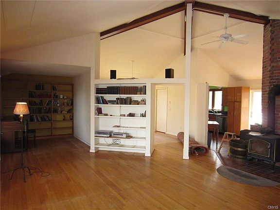 Set among old-growth trees & established perennial gardens on a private lane just outside the village limits sits this spacious ranch on 2.4 acres. Bring your creativity &/or architect along-so much potential- incorporate the open plan, many windows, cathedral ceilings, 4 bedrooms & 3 full baths (& an extra commode in the basement laundry rm-ez access from the yard). There are a lot of closets/storage throughout including dining room built-ins & bookshelves, plus extra "basement" area perfect for a future workshop. Improvements such as new high efficiency 5-zone boiler system, roof(s), septic leach field, well pump & more. Woodland & meadow views, convenient to CPF Trail System, shops, restaurants & the Lake!
