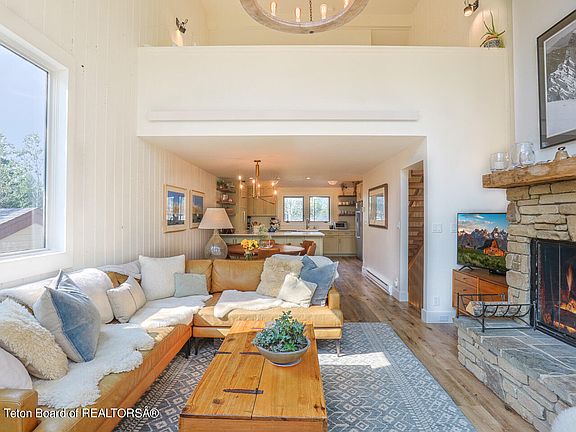 A one-of-a-kind opportunity in the Aspens just 10 minutes away from Jackson Hole Mountain Resort! This 3 bed/3 bath end-unit has been tastefully updated, comes with a 1 car garage and offers views of the Tetons. The living area has floor to ceiling windows to bring in natural light, a wood burning fireplace, and private deck overlooking open space. The open kitchen has stainless steel appliances, soft close cabinets, and bar seating with additional storage. The first floor offers a primary suite with garden level access, a guest bedroom, and full guest bath. A bright and airy loft, with large closet and private bath, can be utilized as a bedroom, office or bonus space. Just a short distance to ski shuttles, dining, shops and bike paths. Strong short term rental history. Selling furnished.