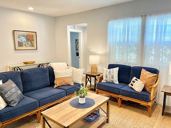 A charming one story bungalow in the beautiful Hollywood Beach community! This adorable 3 bedroom + 2 bathroom home has wood flooring throughout, and offers everything you could need all year long. Warm up by the gorgeous fireplace during the winter or enjoy Oxnard's sunny weather in the backyard during the summer. Walk into the home to be greeted by the tastefully decorated living room, equipped with plenty of seating, and a flat screen tv. Find seating for three at the kitchen bar, that leads into the spacious kitchen. The kitchen is newly updated with a brand new backsplash, and beautiful cabinets that are filled with all sorts of cookware. The kitchen provides plenty of room for cooking, and is home to the cutest dining table for two. This table will offer the perfect spot to enjoy your coffee everyday in the morning sunlight! The three bedrooms all offer luxury beach decor, and accommodations for two, sleeping up to six people total! The two full bathrooms are spacious, and one is an en-suite to the large master bedroom. Come have some fun in this charming bungalow this summer! Located near local restaurants and shopping. Just one block from the beach and around the corner from the channel islands harbor!