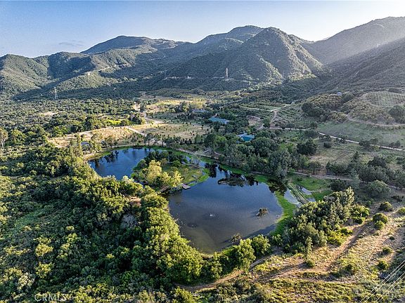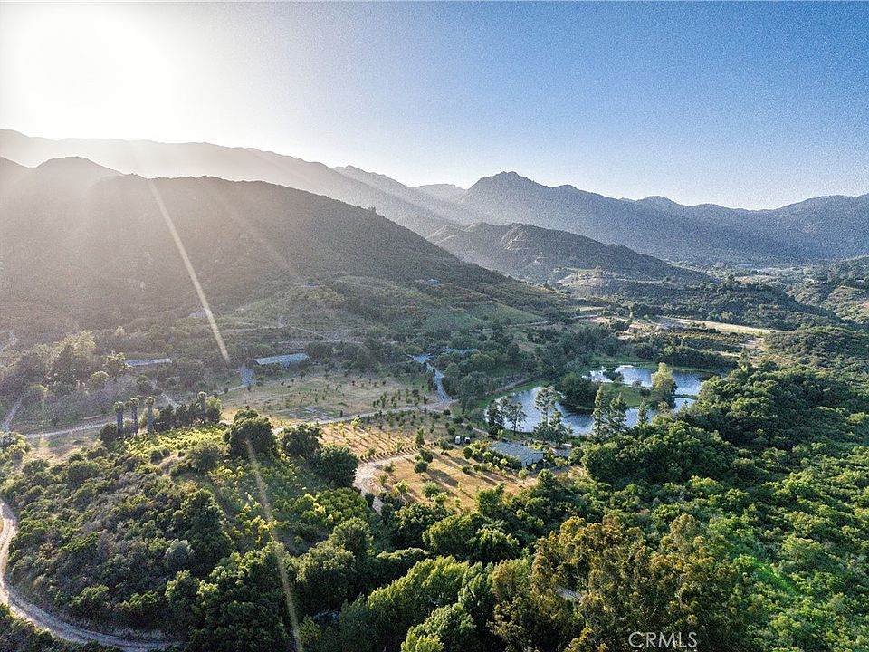 Discover a picturesque estate sprawling over 100 acres, graced with breathtaking panoramic vistas, residences, and multiple workshops. Tucked away in the esteemed De Luz Canyon community, this property boasts enchanting landscapes and gardens that captivate the senses. Enjoy leisurely moments by the 5.5-acre fishing pond complete with a charming dock, explore 22 acres of coveted certified organic avocado groves, and wander through acres of lush stone fruit orchards. - Multiple highly productive quality wells - Fully powered by owned solar field. - Diverse terrain for growing, exploring or building.
