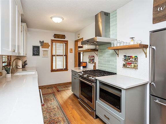 An absolute gem in Beaverdale. Perfect home for entertaining just ten minutes north of downtown Des Moines. A unique find for this area, five bedroom/three bathroom (two full bath, one 3/4 bath) ranch with fully finished basement (2,800+ sq ft of finish total). Beautiful kitchen remodeled in 2018, complete with quartz counter tops, slow close cabinets, full hood vent, cast enameled farmhouse sink, gas range, all new stainless KitchenAid appliances. Basement is fully finished, complete with a large wet bar, wired for projector and surround sound, and egress windows that allow for natural light in the basement. Impressive private guest room in basement. Large primary on main floor with skylight and solar powered shade, large jetted tub in primary en suite, and slider out to deck.