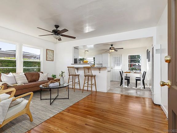 Welcome to this delightful La Mesa property featuring a 3-bedroom, 1-bath main home plus a versatile bonus studio—perfect for guests, a home office, or rental income potential. Situated on a generous 7,600 sq. ft. flat lot, this property offers plenty of space and opportunity. Step inside to find beautifully refinished original hardwood floors that bring warmth and character, complemented by brand new carpet in one of the bedrooms and new tile in the bathroom. The bright eat-in kitchen is ideal for casual dining, and the attached 10 × 9 ft laundry room adds everyday convenience. A brand-new roof provides peace of mind for years to come. The detached studio features its own separate entrance, a kitchenette, and a private bathroom, offering flexible living arrangements for extended family, guests, rental possibilities or a dedicated home office. Imagine the endless possibilities on this expansive, flat lot, already enhanced with thoughtful landscaping and a generous storage shed. Both the main home and studio unit have fresh interior paint making them move in ready. Centrally located near parks, shopping, and freeways, this charming property combines comfort, character, and potential—all on a spacious lot in a desirable La Mesa neighborhood.