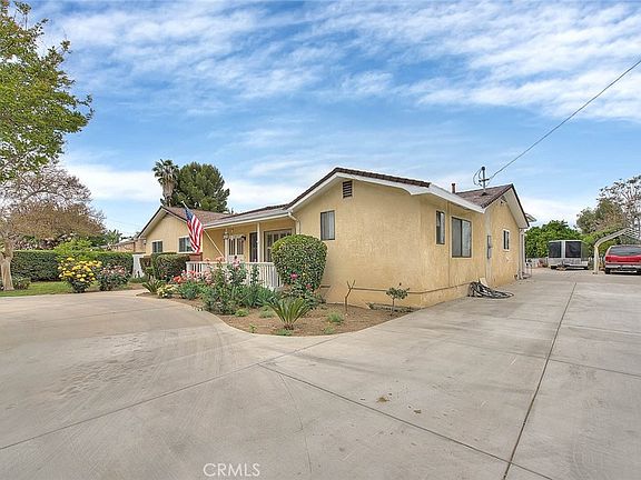 Beautiful One Story Home on an Approximately 2/3 Acre Lot in Chino! This Lovely Home Features a Double Door Entry with a Large Front Porch Area and a Circular Driveway in Front. Huge Living Room with a Wood Burning Fireplace with Built in Wood Cabinets/Shelving. Formal Dining Room and a Open Concept Kitchen with a Center Island with a 5 Burner Gas Cooktop, a Stainless Steel Overhead Vent Fan and a Sink. The Kitchen Also Features a Double Oven, Dishwasher and Upgraded Cherry Wood Cabinets and Formica Counter tops. Hardwood Flooring Throughout the Kitchen, Breakfast Nook, Entry and Three of the Bedrooms. Nice Carpeting in the Living Room & Dining Room. Four Spacious Bedrooms Including a Primary Bedroom with a Primary Bathroom with a Tub/Shower and a Vanity with Dual Sinks on one Side of the Home. The Remaining Three Bedrooms All Feature Hardwood Flooring and Ceiling Fans. The Hall Bathroom has a Remodeled Tub/Shower Enclosure with Glass Slider Door, a Dual Sink Vanity and Tile Flooring. The Guest Bathroom has a Walk-In Stall Type Shower that Has Been Recently Updated and a Newer Vanity with Sink. Indoor Laundry Room with a Sink, Built in Cabinets and Storage Cabinets. Dual Paned Windows Throughout the Home and French Doors from the Kitchen to the Rear Yard. Dual Unit Central A/C and Forced Air Heating. Two Car Detached Garage with Opener and Separate Area for an Office or Workshop Attached to the Garage. Covered Patio Area with a Ceiling Fan & Light with a Concrete Slab. Beautifullly Landscaped Front and Rear Yard with Several Flowers and Trees. Some of the Trees on the property are: Avocado, Persimmon, Orange, Loquat, Pomegranate, Kumquat, Tangerine, Fig and Walnut. Long Driveway on the Side of the Property Provides Access to the Rear of the Property and the Garage. Centrall Located Near Shopping, Schools and Freeways!